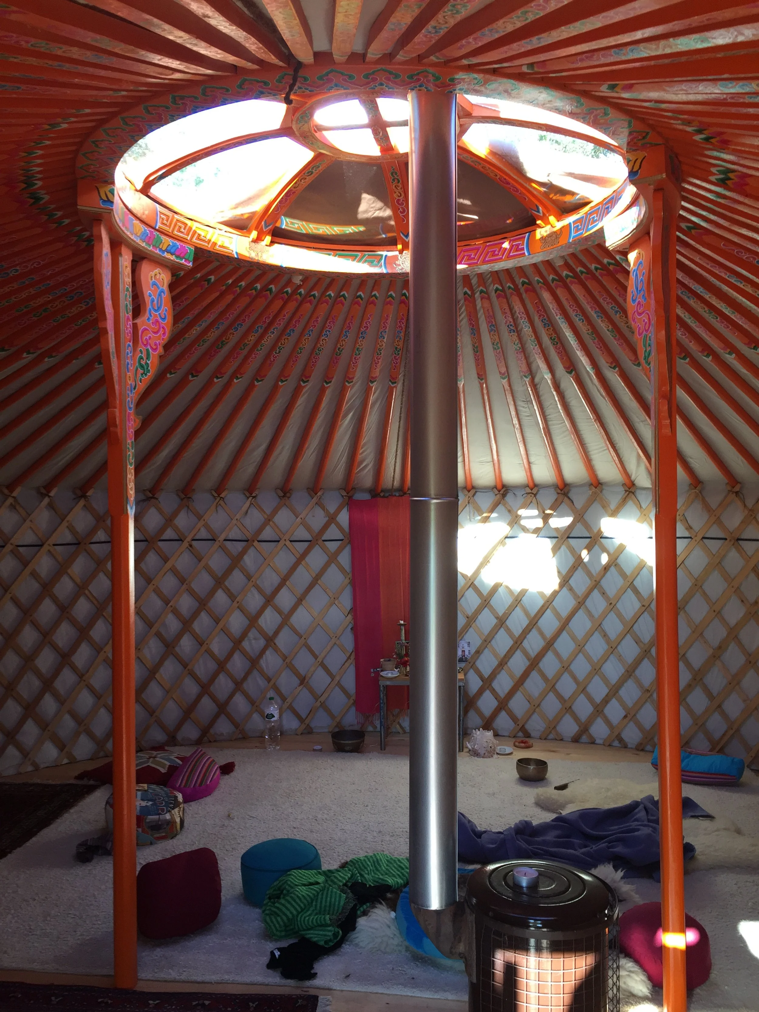 Unsere mongolische Yurte steht im Normalfall allen unseren Gästen zur Ruhe und Entspannung zur Verfügung. Sie kann aber bei Bedarf auch für einen Aufenthalt und zum Übernachten gemietet werden.
